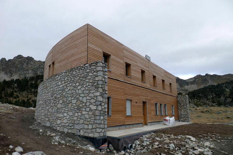 le nouveau refuge d'Aygues Cluses, sa face Sud -