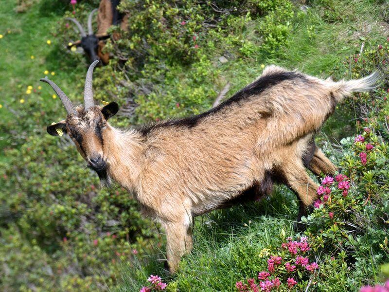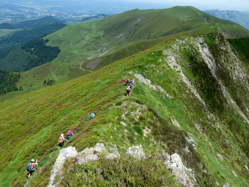 mais nous continuons sur la crête, fleurie de rhododendrons, -