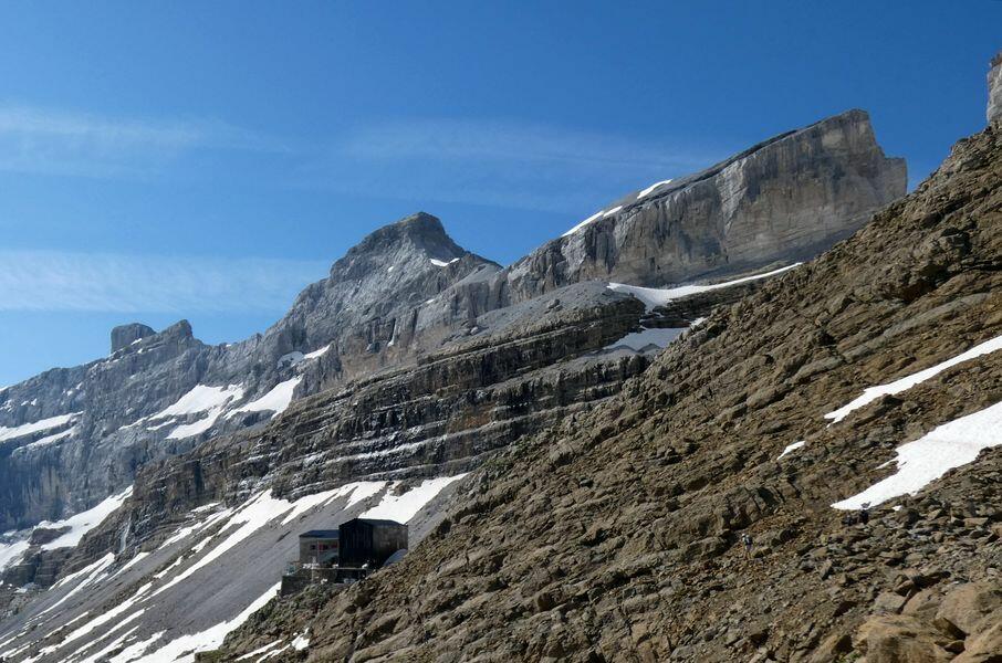 Au col des Sarradets, vue sur le refuge de la Brèche -
