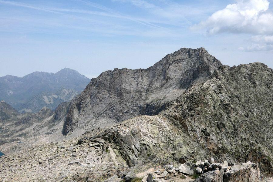 à l'est le sommet du Néouvielle, et l'arête des Trois conseillers -