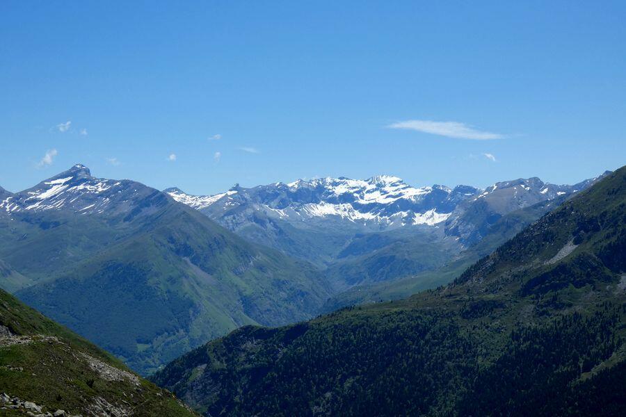100m plus haut, vue vers Gavarnie avec Mont Perdu, Cylindre et Marboré -