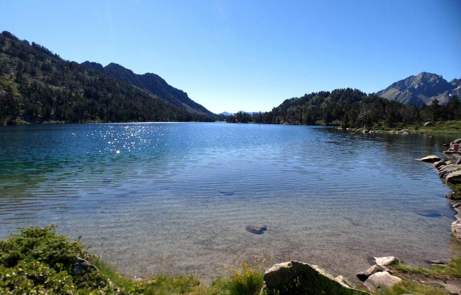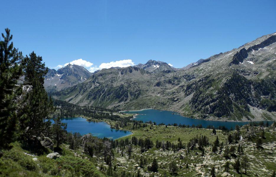 au Nord: Lacs Madamète et refuge d'Aygues Cluses -