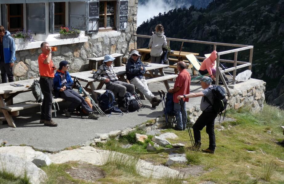 Pendant notre pause casse-croûte, des grimpeurs redescendent. -