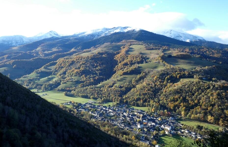 en descendant, vue sur la plaine de Campan -
