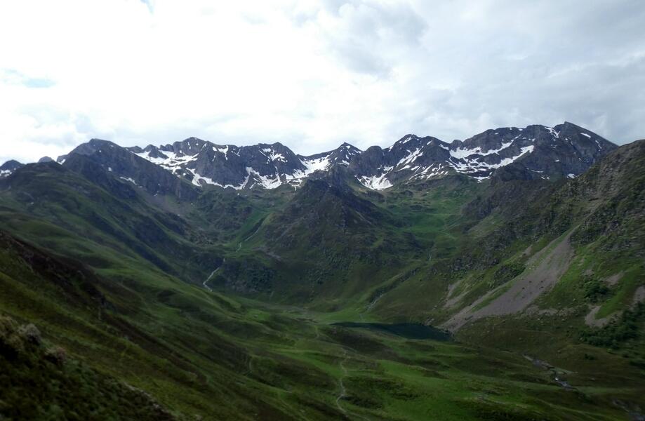 Au départ de Hautacam, vue sur pics du Montaigu, Naouit,et Moulata -