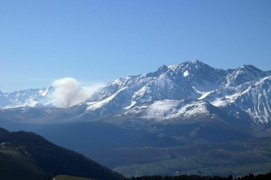 Au Sud, l'Arbizon avec un écobuage probable à la hourquette d'Ancizan. -