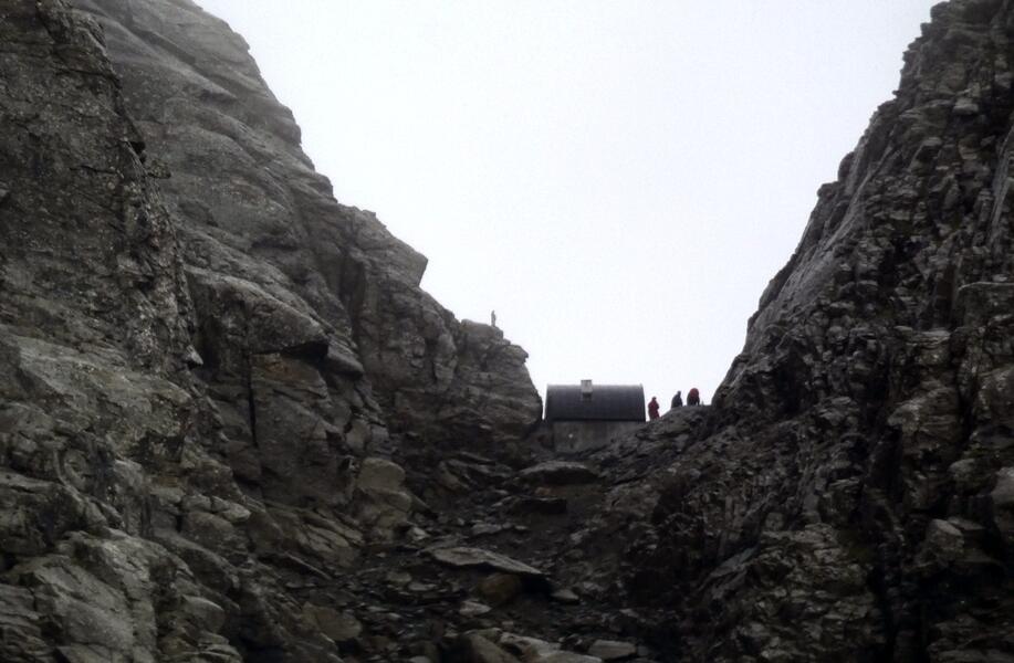 Vue sur le fond du cirque et ses crêtes embrumées -