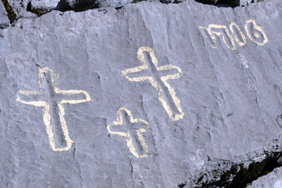 pour atteindre l'objectif : les trois croix gravées en 1716 -