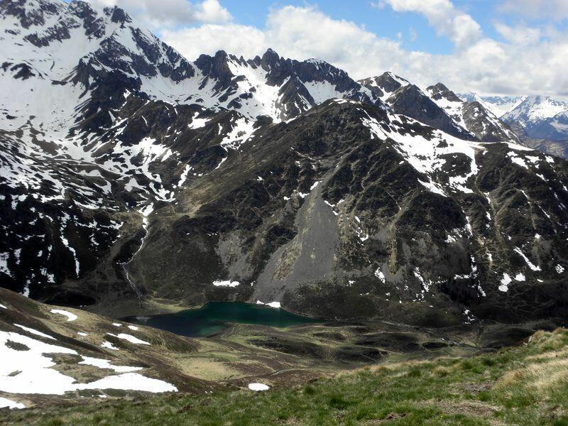avec vue Nord sur les pics de Cumiadères, Maucapéra, Marraut, et au fond à droite, le Mont Arrouy -