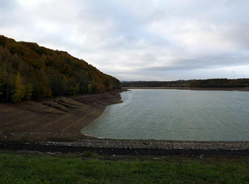 Vue sur le barrage au nord. D'ici on voit bien la grande zone Asséchée -