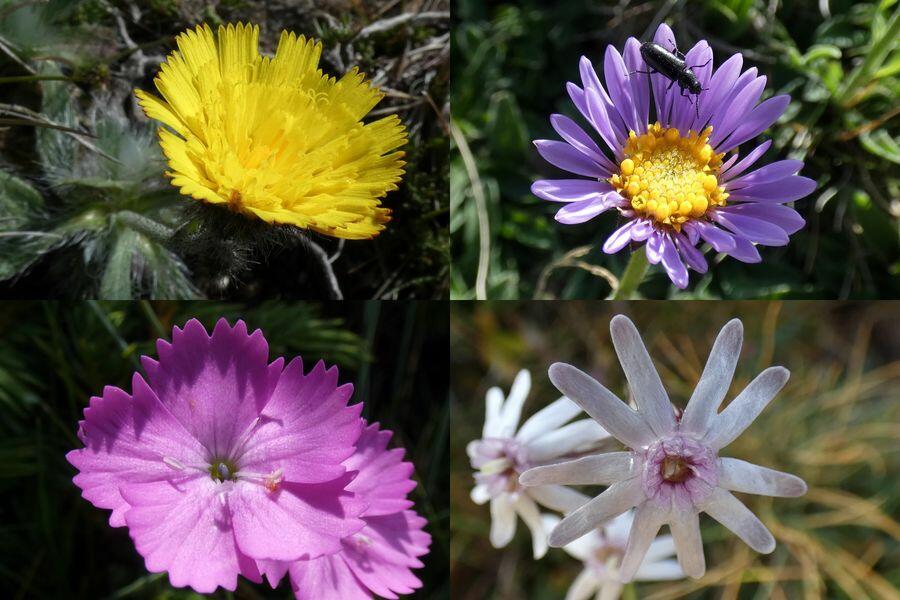 Piloselle à tiges courtes, Aster des Alpes, Oeillet des rochers, Silène cilié