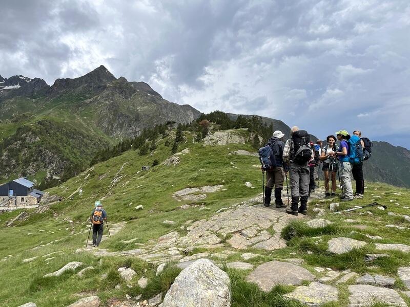 Arrivée au col d'Espingo et son refuge, au fond le pic d'Espingo