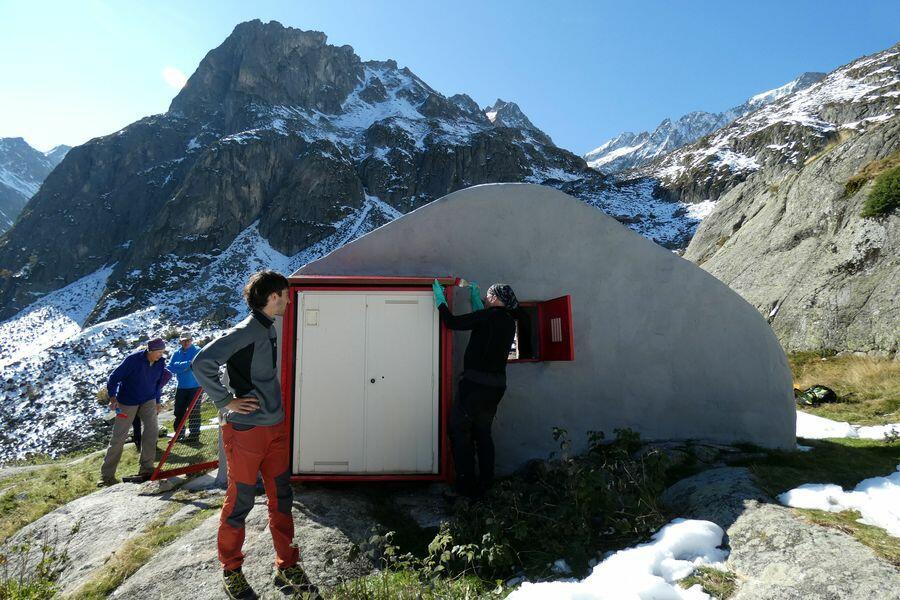 Arrivée au refuge avec parquet, mortier, peinture, etc... -