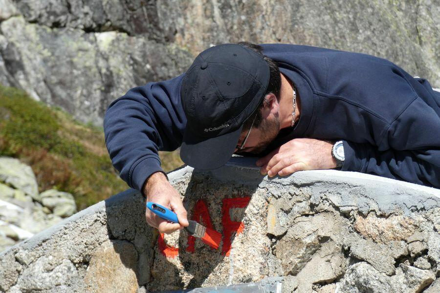 Une équipe s'occupe du grattage des graffitis et masticage des fissures, -