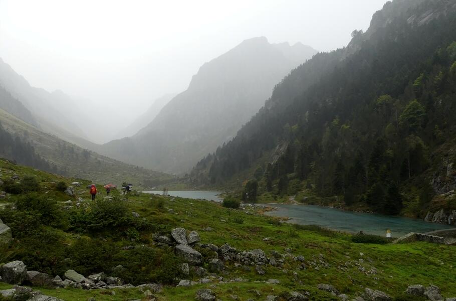 Montée dans la brume jusqu'au lac de Suyen -