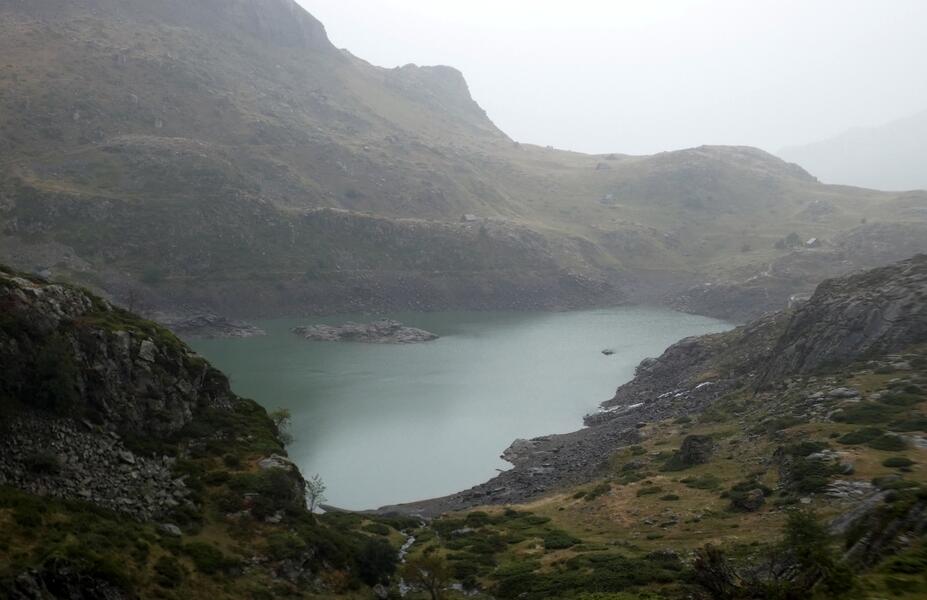 Vue sur le fond du cirque et ses crêtes embrumées -