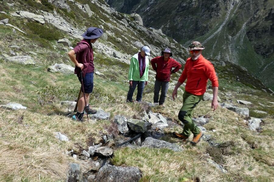 Après le casse-croûte, une partie du groupe monte vérifier la prise d'eau, -