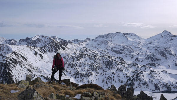 Sur la crête de Bidour, vue sur l'objectif, avec Arbizon et Monfaucon en fond, -