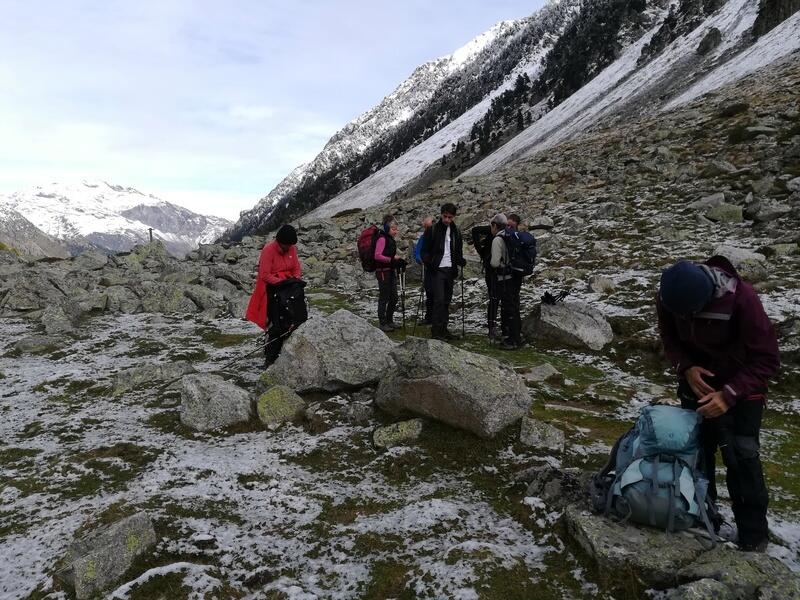 Après le casse-croûte au col du Bastanet, descente vers l'Oule. -