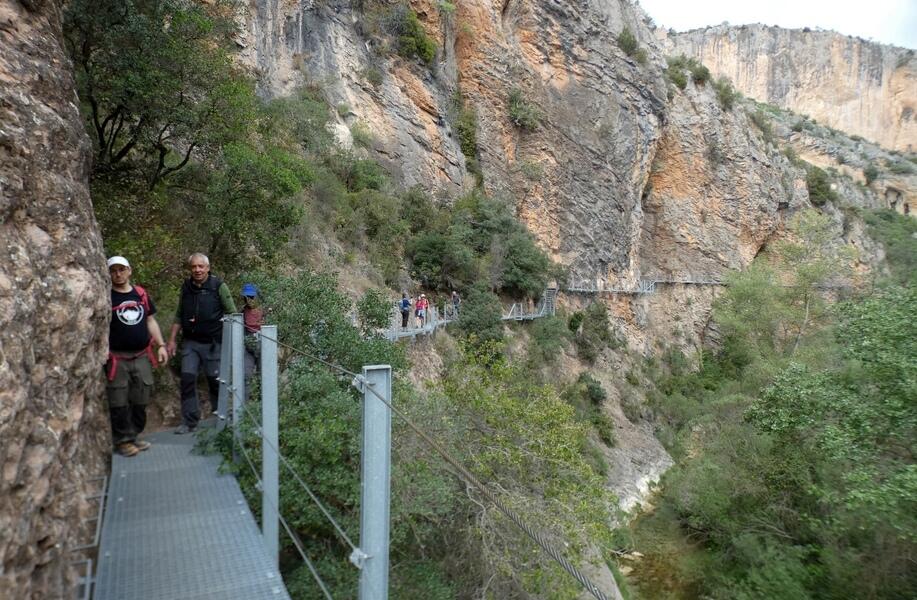 Une pente verglacée nous dissuadera de monter à Benaquès avec cette météo peu engageante. -