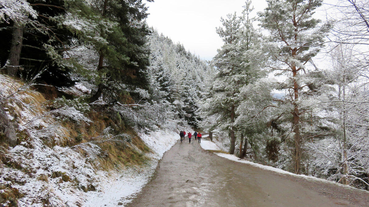 La neige s'est presque arrétée, la piste en manque! mais les arbres sont magnifiques