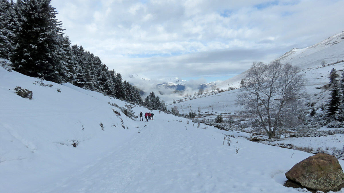 La descente jusqu'à Artigue se fera dans la neige lourde.