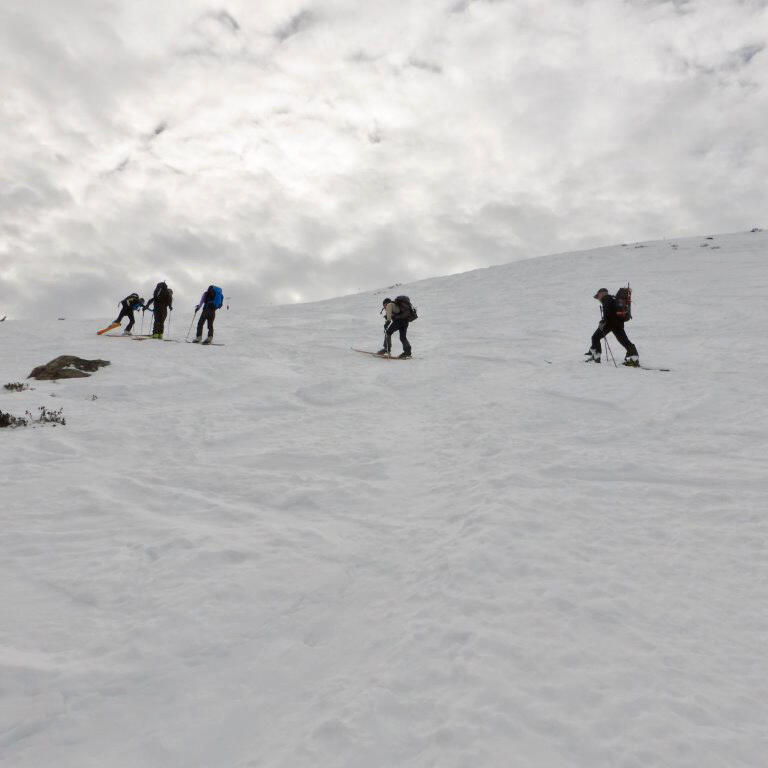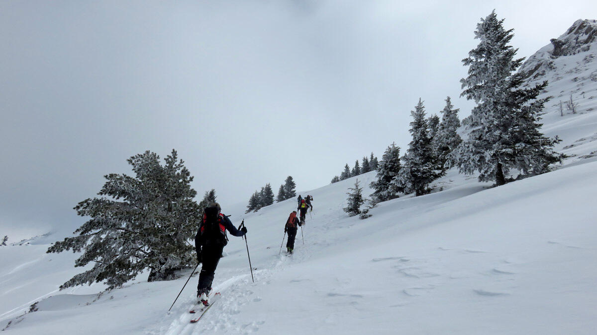 Zéro degré, neige et ciel chargé, on a hésité avant de démarrer.Casaux Dessus 1280m